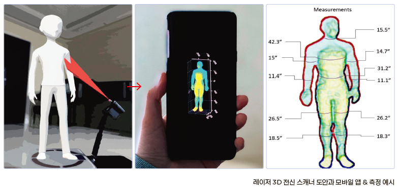 - 토탈 3D 전신 스캔 서비스 시스템 : 저가 고성능의 3D 전신 스캐너를 공급, 사용자들이 스캔 후 본사 홈페이지에 접속하여 자세한 3D 전신 스캔 리포트를 열람