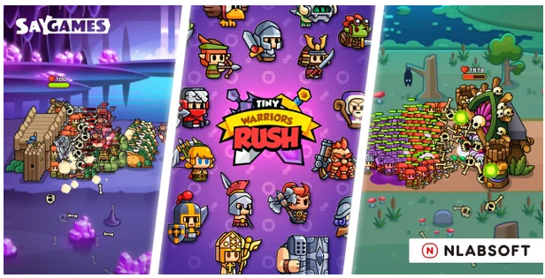 타이니 워리어스 러시는 세이게임즈와 엔랩소프트가 처음으로 공동 테스트를 진행한 하이브리드 캐주얼 타워 디펜스 게임으로, 전략적인 업그레이드 시스템과 빠른 2D 액션이 결합된 점이 특징이다. 소프트 론칭 첫주에 1만건 이상의 이용자 리뷰를 확보, 평균 평점 4.6점을 기록했다.