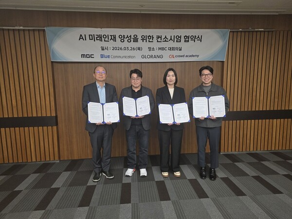AX 교육기업 글로랑(대표 황태일)은 26일 MBC 상암본사에서 MBC((주)문화방송), 크라우드아카데미, 블루커뮤니케이션과 함께 ‘AI 시대 미래인재 양성을 위한 공동 협력 협약식’을 개최하고, AI 교육 사업 추진을 위한 컨소시엄 협력 체계를 공식화했다고 밝혔다.