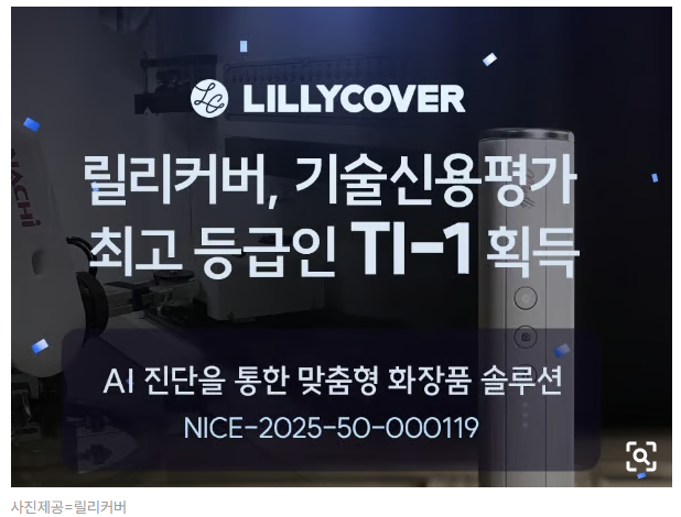 맞춤형 화장품 솔루션 선도기업 릴리커버가 한국 기술신용평가(TCB, Technology Credit Bureau)에서 최고 등급인 TI-1을 획득했다.