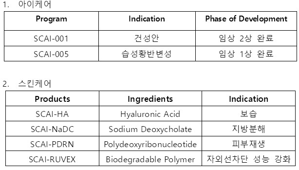 SCAI-001(안구 건조증 치료제) 임상 2상 완료