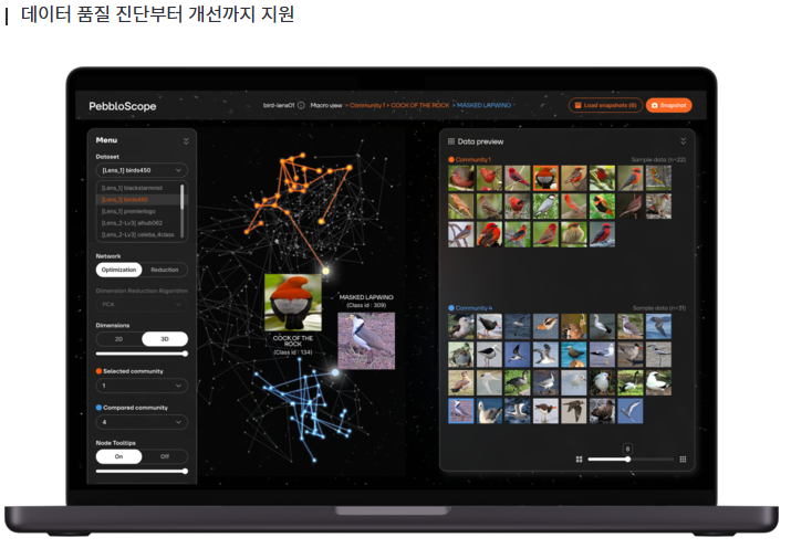 특히 메타데이터가 아닌 통계 및 의미 기반의 데이터 품질평가를 제공하며, 높은 수준의 합성데이터 기술과 정밀 타게팅 기술을 이용한 합성데이터 생성, 데이터 경량화를 위한 데이터 다이어트 등의 품질평가 및 진단을 수요기업에 제공할 예정이다.