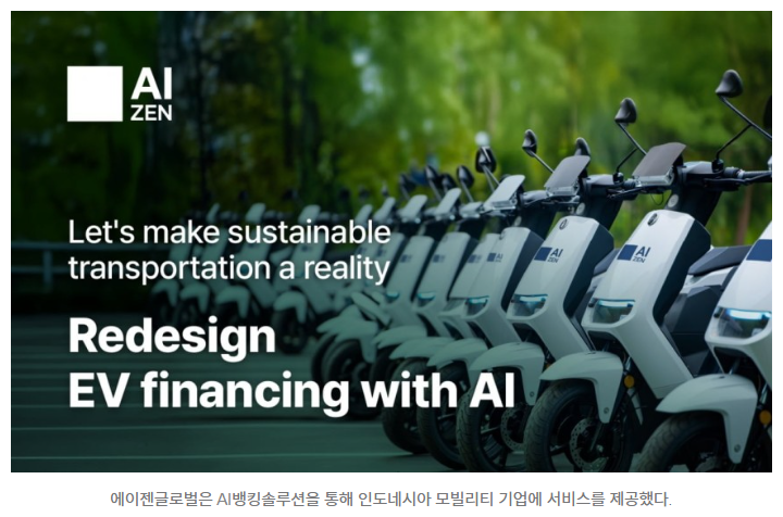 에이젠글로벌은 국내 금융회사 및 글로벌 은행이 인도네시아에 1600만달러(약 220억원)의 여신 서비스를 실행하는 데에 성공적 역할을 했으며, 자카르타를 시작으로 발리, 수라바야, 메단을 포함한 인도네시아의 주요 4개 지역에서 서비스형 뱅킹을 제공하고 있다. 이같은 확장은 인도네시아의 친환경 금융과 ESG 활성화를 지원하며, 지속 가능한 모빌리티 솔루션을 더 많은 사용자에게 제공하는 데 중점을 두고 있다.