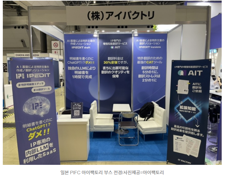 아이팩토리는 이들 박람회를 통해 신규 서비스인 AIT를 소개하고 IPEDIT에 탑재한 새로운 AI 기능들을 공개했다. 기업의 지식재산팀이나 연구소에서 보안 리스크 없이 AI를 쓸 수 있다는 점도 알렸다. 회사 측은 일본, 중국은 물론 대만과 베트남 등 제3국 진출을 위해 박람회에 참가했다고 했다.