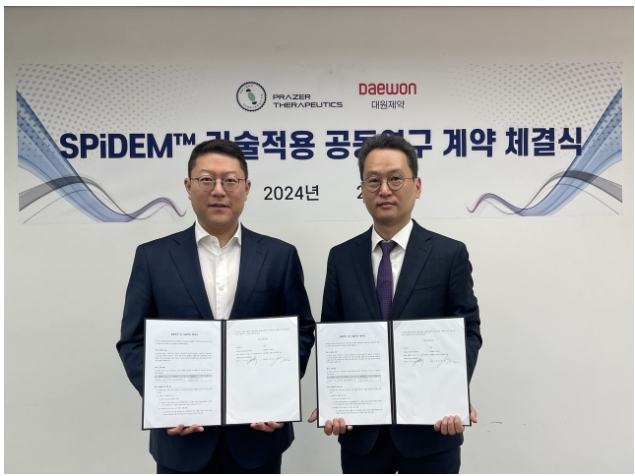 혁신적인 바이오 제약 기업 프레이저테라퓨틱스 Prazer Therapeutics(이하 “프레이저”)가 대원제약과 SPiDEM 기술을 기반으로 한 공동연구개발 본계약을 체결했다.