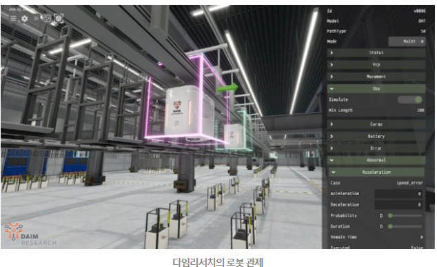 다임리서치는 AI 및 디지털트윈 기술을 활용해, 로봇 기반의 자율화 공장 구축 플랫폼 ‘로봇 오케스트레이션 플랫폼(Robot Orchestration Platform, ROP)’을 구축했다.