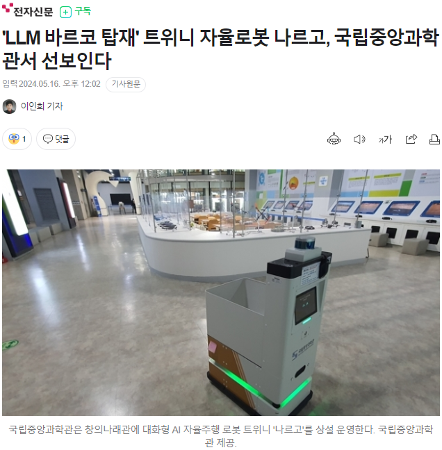 'LLM 바르코 탑재' 트위니 자율로봇 나르고, 국립중앙과학관서 선보인다