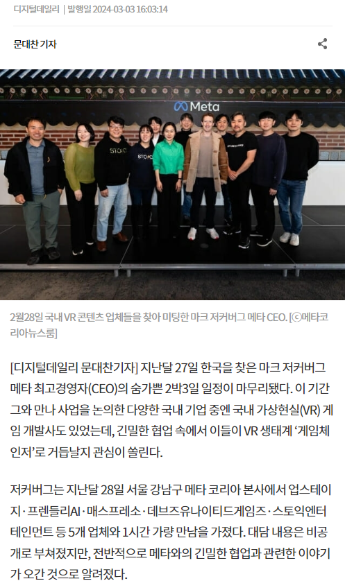 저커버그 만난 韓 게임사… VR 콘텐츠 ‘게임체인저’ 기대