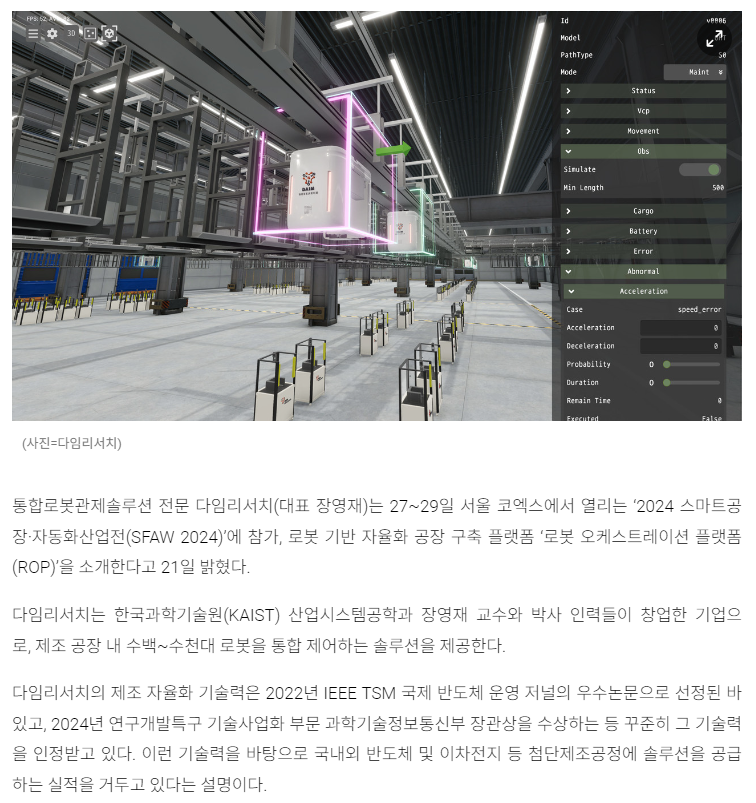 다임리서치, ‘SFAW‘서 로봇기반 자율화 공장 구축 플랫폼 소개