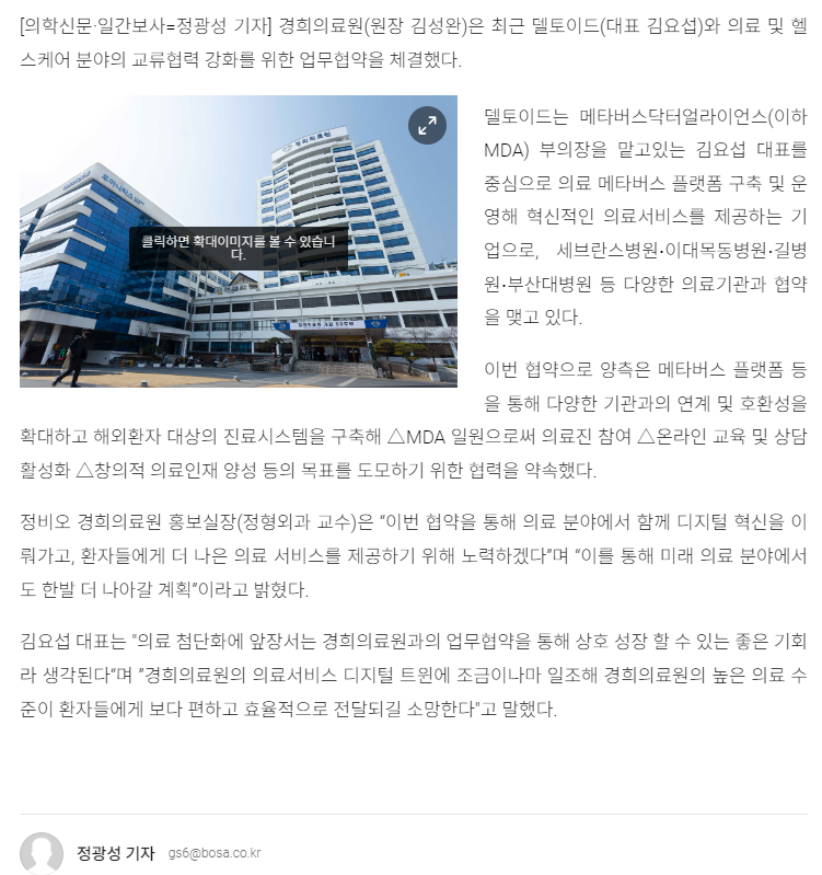 경희의료원, 델토이드와 의료·헬스케어 분야 업무협약 체결