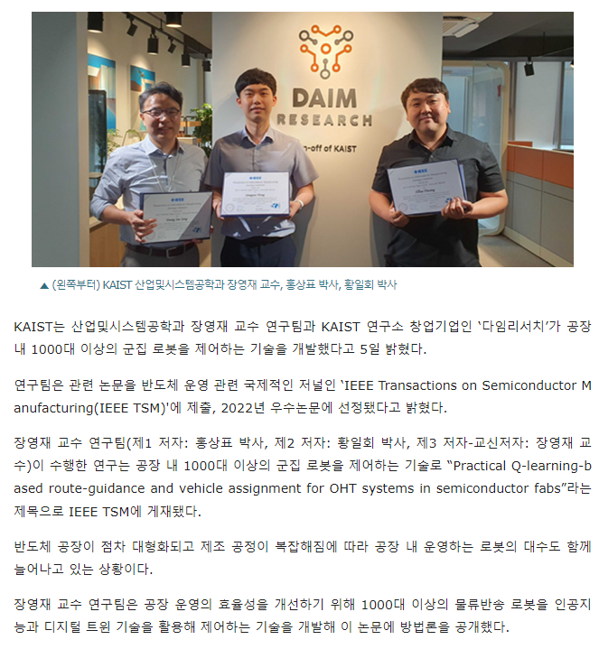 KAIST 장영재 교수팀, 1000대 이상 군집 로봇 제어 기술 개발