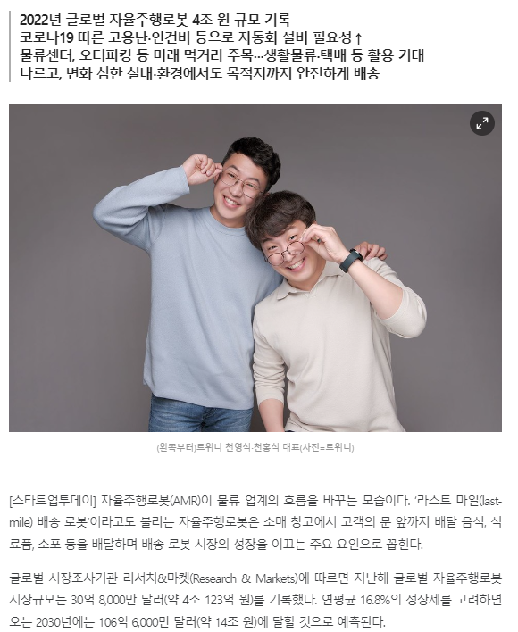 [인터뷰] 트위니, 자율주행로봇 ‘나르고’로 주어진 목적지까지 안전하게 물건 운송