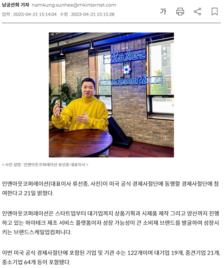 브랜드스케일업컴퍼니 인앤아웃코퍼레이션, 대통령 美 국빈 경제사절단 참여