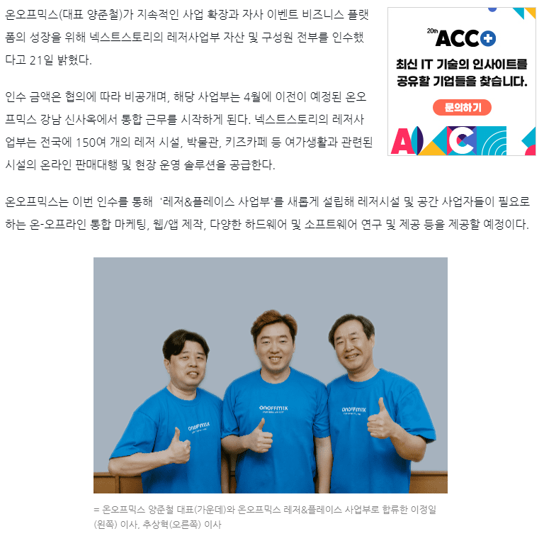 온오프믹스, 넥스트스토리 레저사업부 인수