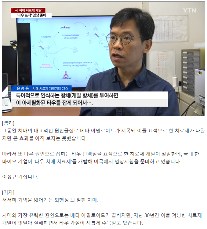 '타우 표적' 새 치매 치료제 개발...미국서 임상시험 준비
