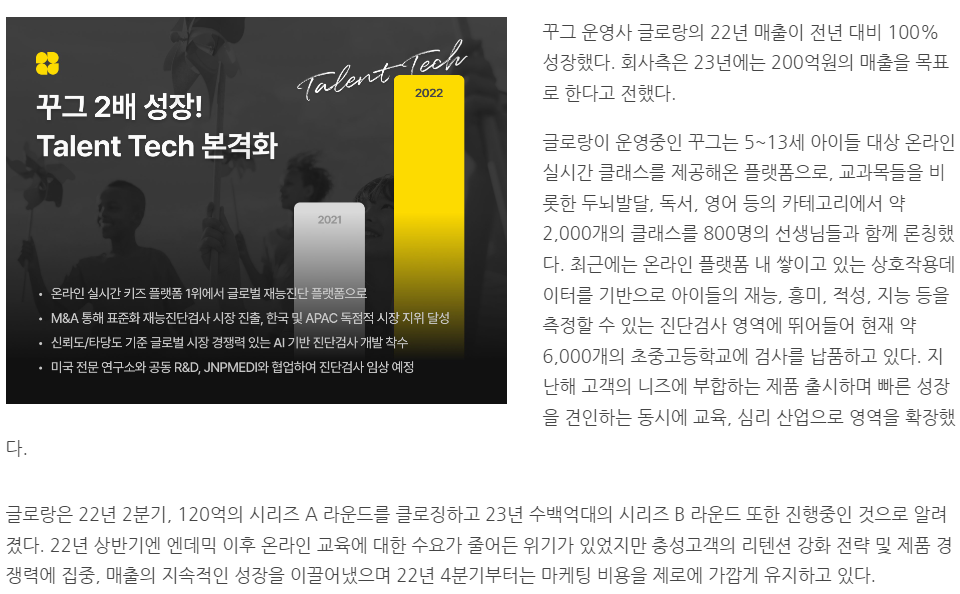 꾸그’ 운영사 ‘글로랑’, 2022년 매출 성장률 100%…글로벌 진출 본격화