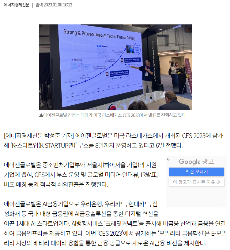 에이젠글로벌, CES 2023에서 AI금융으로 ‘K-Startup’ 알려