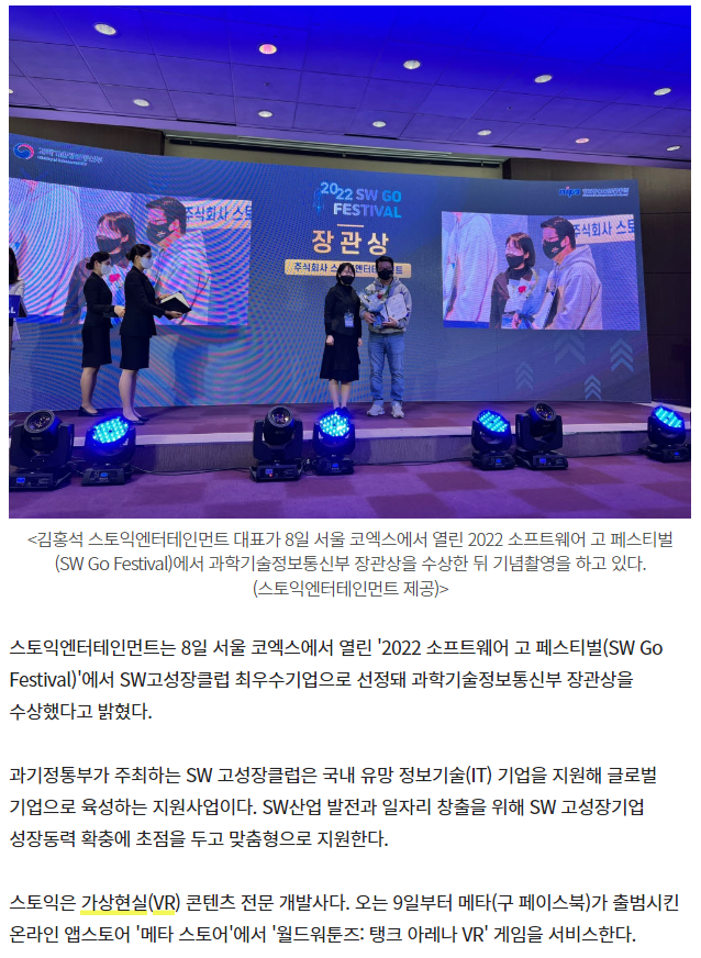 스토익엔터, SW고페스티벌서 과기정통부 장관상 수상
