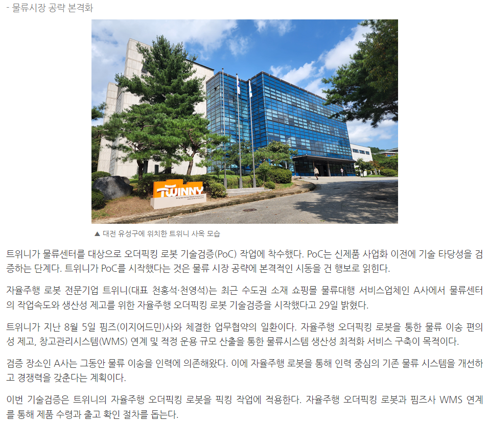 트위니, 자율주행 오더픽킹 로봇 '기술검증' 착수