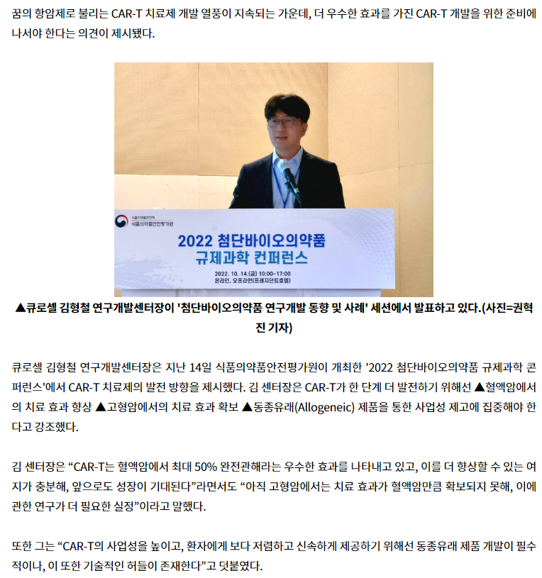 큐로셀 "4세대 CAR-T가 온다…CAR-T는 진화 중"