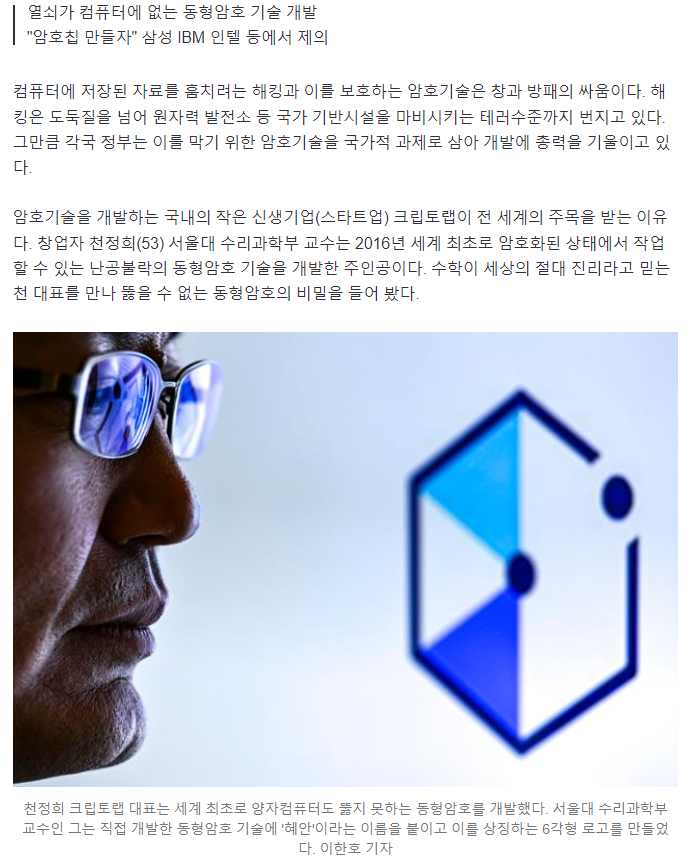 [스타트업 리포트] 세계 최초 ‘뚫리지 않는 암호’ 개발한 천정희 크립토랩 대표