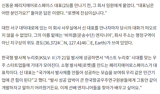 페리지에어로스페이스_소형발사체 도전 ‘로켓 덕후’… “우주 탐사는 미래위한 투자”