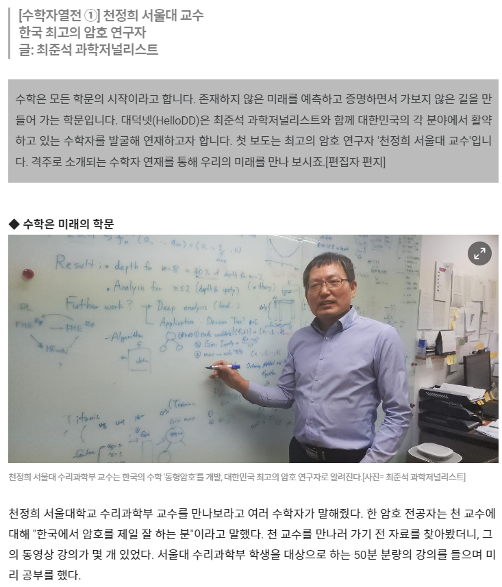 크립토랩_"서양 수학, 따라가기 급급···한국 수학 '동형암호' 역습"