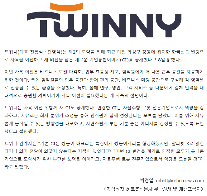 트위니, 사옥 이전 및 CI변경..제2의 도약 도모