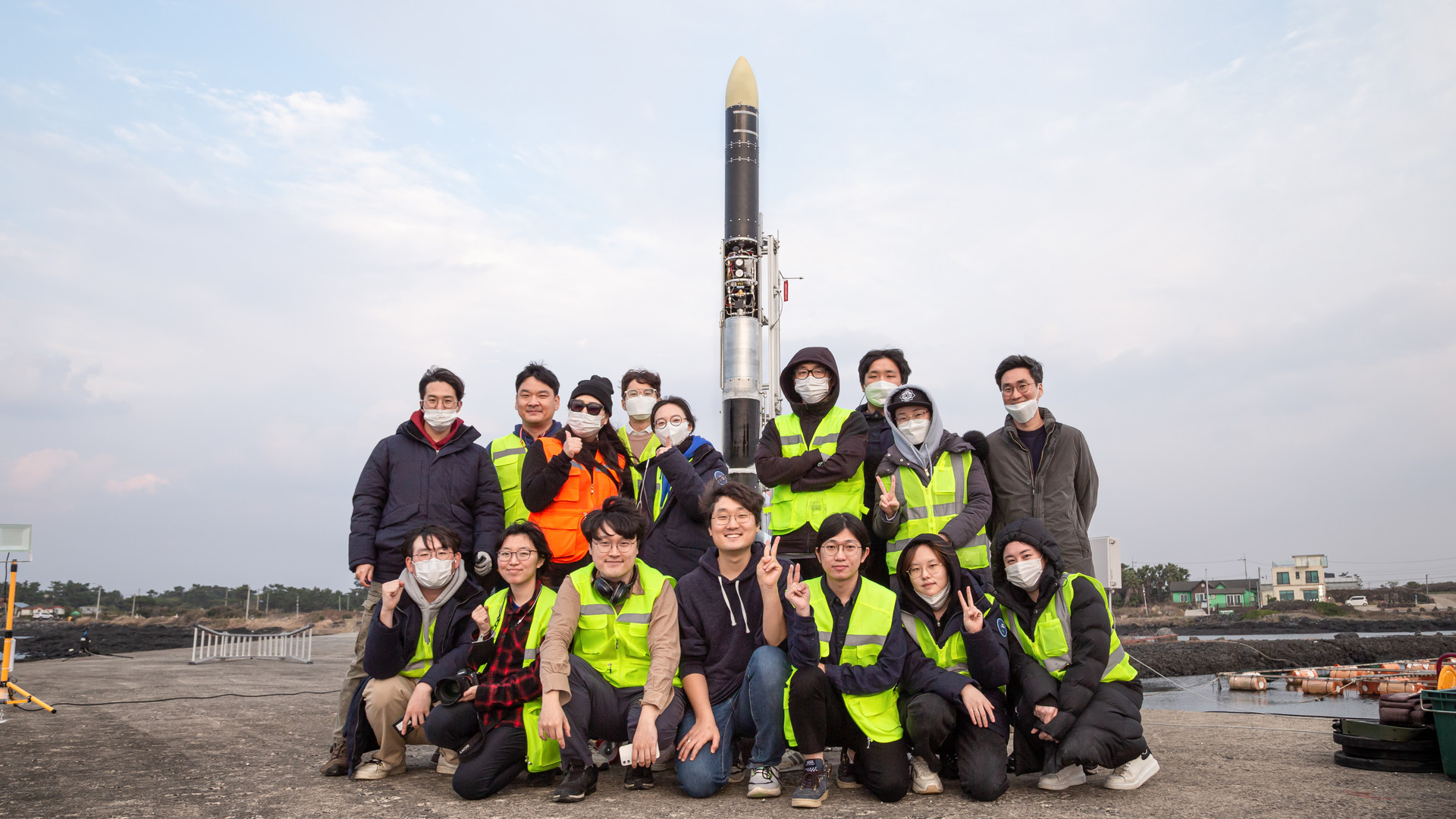 기념로켓 발사 전 촬영한 사진. 가운데 사람이 신동윤 대표이다. (신동윤 대표 제공)