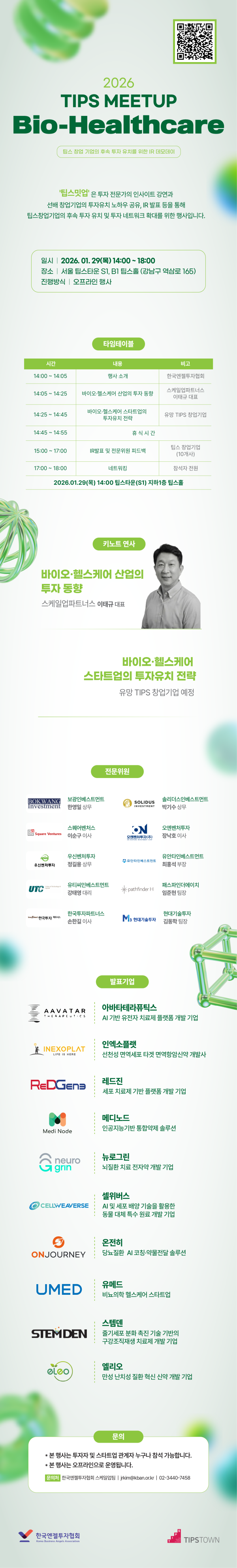 2026 팁스밋업(바이오·헬스케어) 참관객 모집(1/29(목)