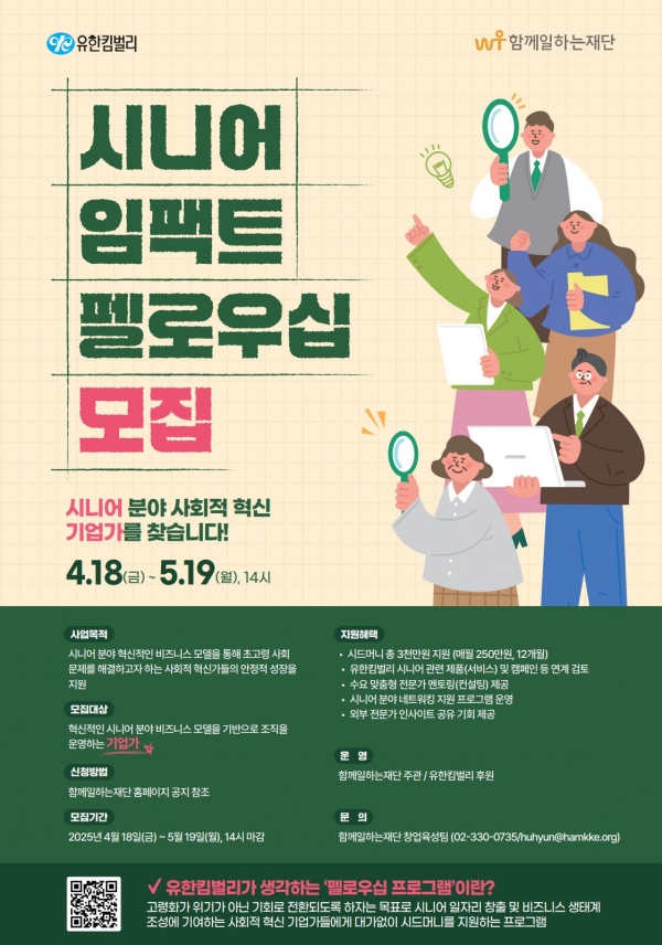 [함께일하는재단] 2025년 유한킴벌리 시니어 임팩트 펠로우십 모집