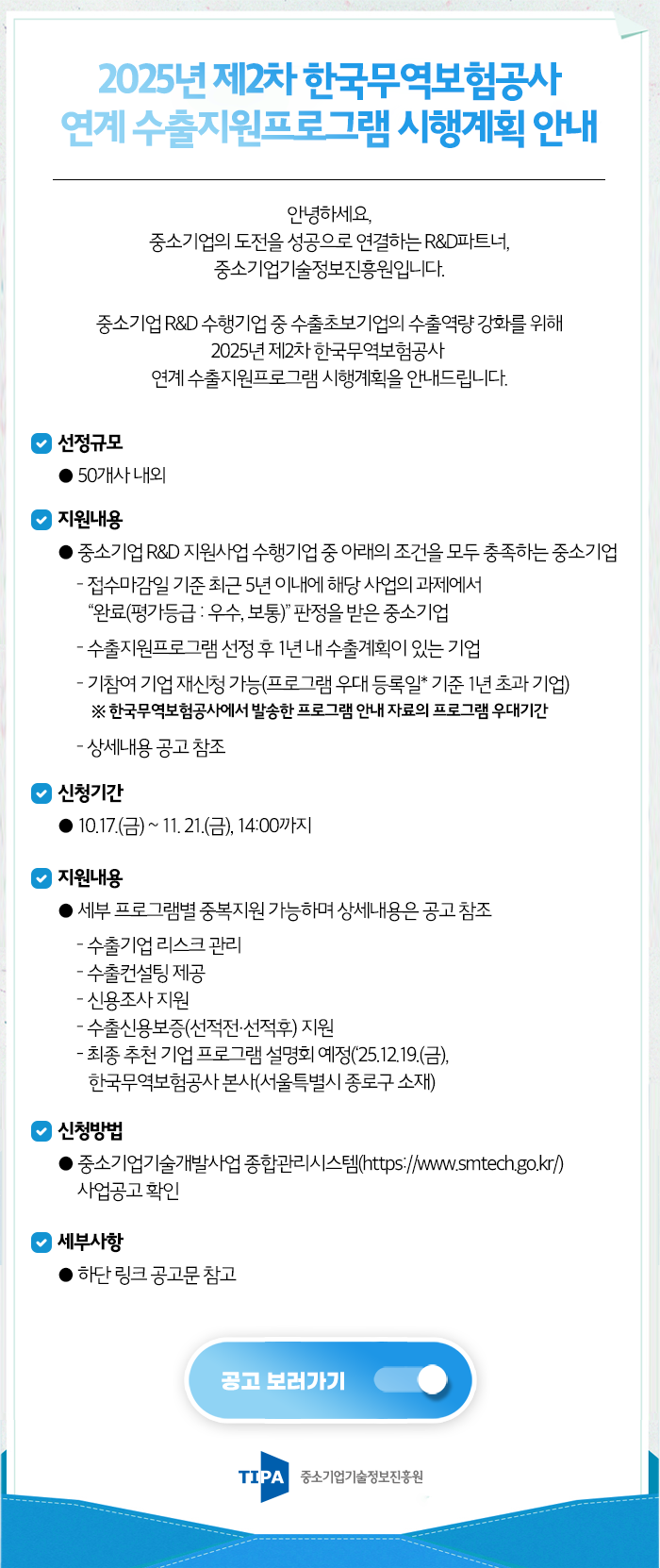 2025년 제2차 한국무역보험공사 연계 수출지원프로그램 시행계획 안내