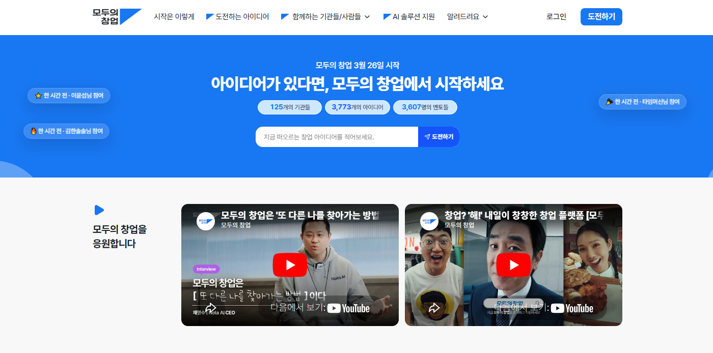 2026년 대국민 창업 오디션 「모두의 창업」이 오늘(3.26.)부터 본격적으로 시작되었습니다.