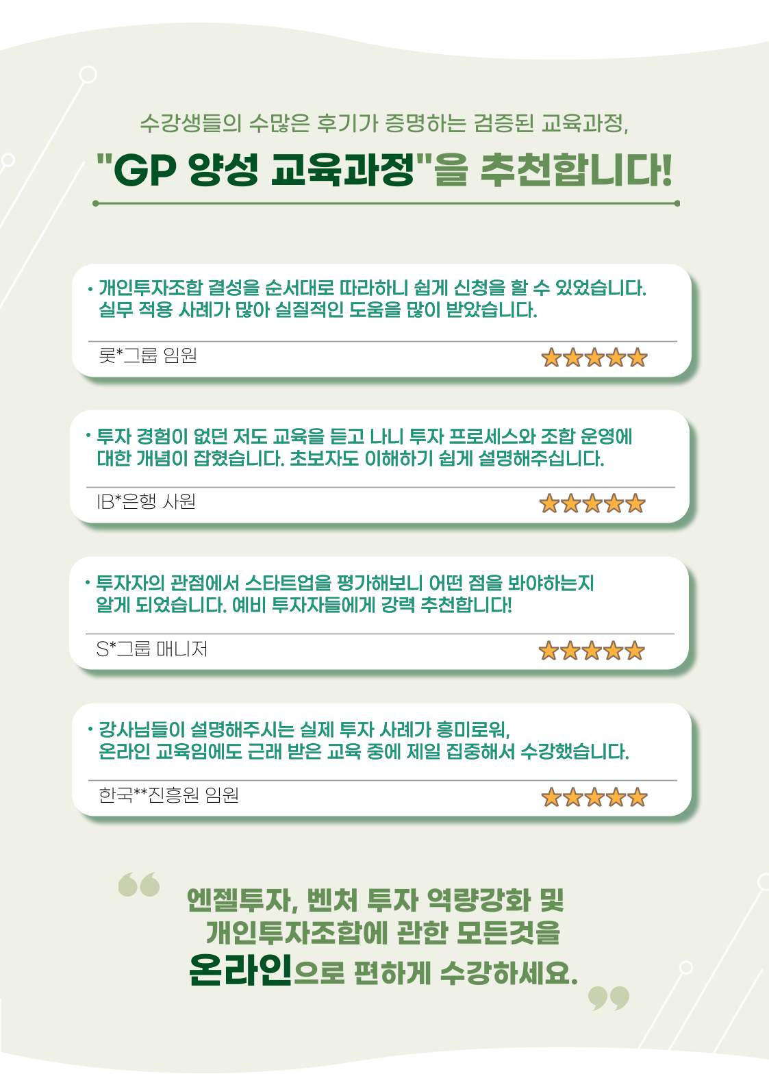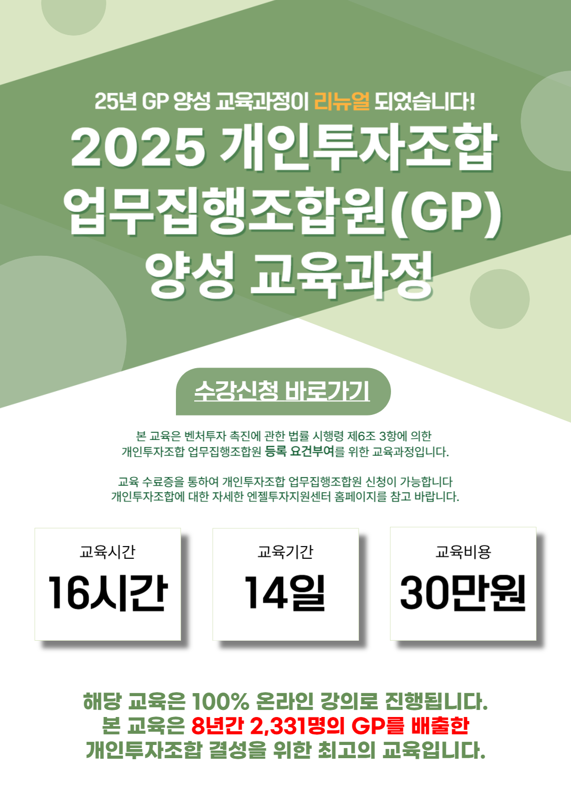 개인투자조합 업무집행조합원(GP) 양성 교육과정 리뉴얼 오픈